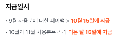 - 9월 사용분 → 10월 15일부터 순차 지급