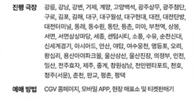 - 장소: 서울 포함 전국 주요 CGV 지점