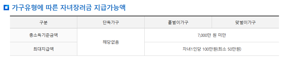 - 자녀장려금 신청 대상 요건