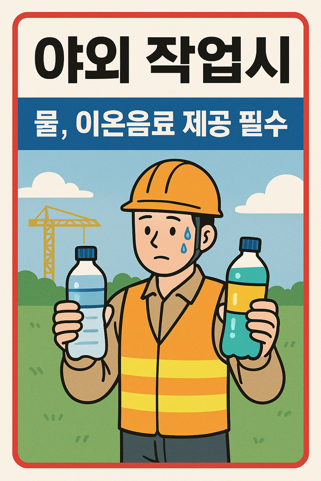 - 야외 작업 시 그늘 휴식, 물, 이온음료 제공 필수입니다.
